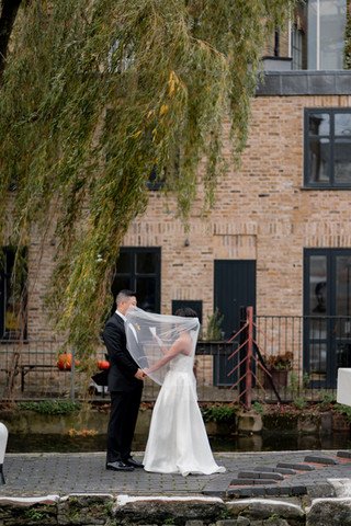 Before heading to the ceremony, Ted and Crystal crossed the canal to read their vows in private. I photographed from a distance, giving them space while still capturing the moment. The October sun broke through just in time, lighting up the burnt orange leaves, trailing ivy and the pumpkins dotted nearby. A proper Autumn love scene. Obsessed.